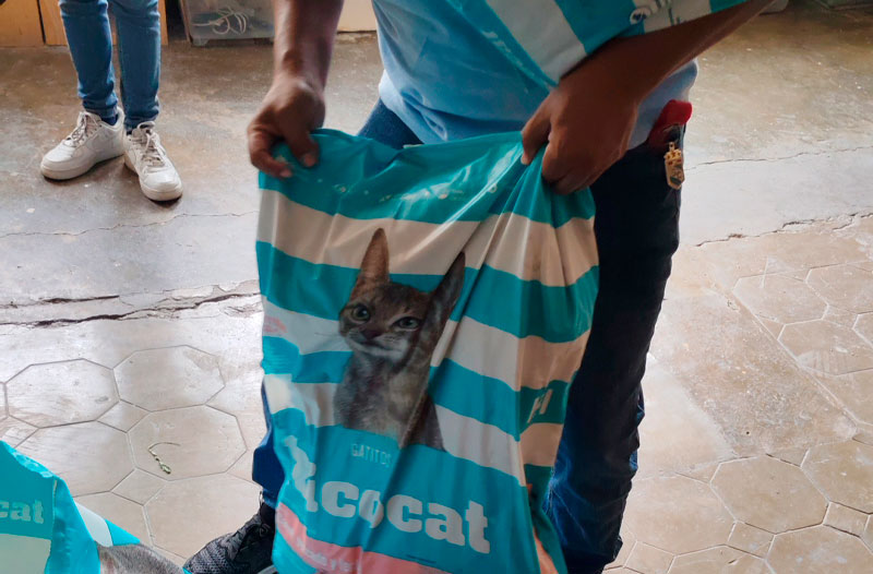 La entrega se realizó dentro del hospital, con la participación de tres personas, entre ellas Miguel Catman, fundador de Catman Shop e influencer amante de los gatos, quien compartió un momento muy especial con los rescatistas y los felinos beneficiados. Se entregaron cuatro sacos grandes de alimento, llenos no solo de comida, sino también de esperanza.